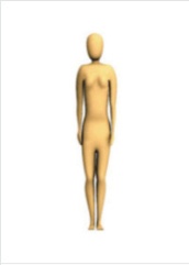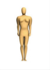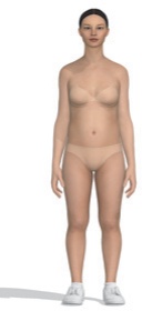 본 연구에서는 디지털 인체를 체형별로 제작하기 위하여 사이즈코리아(Size Korea)에서 제공하는 한국인의 체형 분류 데이터를 활용하였다. 사이즈코리아의 성별 및 연령별 체형 데이터 중 20대 여성의 인체치수 데이터를 사용하였고, 체형은 작은 역삼각체형, 역삼각체형, 큰 삼각체형, 사각체형의 네 가지로 구분된 분류 체계를 적용하였으며, 표준체형 데이터도 함께 참조하였다(Size Korea, n.d.). 이를 기반으로 클로버추얼패션사의 CLO 3D의 아바타 편집툴(Avatar editor)에 각 데이터를 입력하여 가상착의에 필요한 다섯 가지 디지털 인체를 구성하였다.