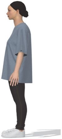 또한 체형의 다양함은 대부분 키와 둘레로 결정되며 티셔츠, 탑 등과 같은 상의류 착용 시 맞음새만족도는 다양한 조건으로 달라질 수 있다. 티셔츠 연구의 경우, 밀착형, 원형, 맞음새 비교 및 패턴 개발이 주로 이루어졌으며(Park & Park 2011; Chang et al. 2014; Kim & Kwon 2016; Kim et al. 2017; Kang 2021), 몸판에 관한 연구는 길 원형(Yun & Park 2011; Hong 2015), 토르소 원형(Yoon 2013)을 주제로 진행되었다. 이와 같이 여성 상의류에 관한 기존 연구는 주로 밀착형이나 원형을 중심으로 전개되어 왔지만, 한 개의 치수(free size)를 적용하여 제작되는 오버사이즈 상의류의 맞음새 효과에 대한 연구는 전무하다. 이에 본 연구는 상대적으로 연구가 부족한 오버사이즈 티셔츠를 연구 대상으로 선정하고, 20대 여성의 체형별 가상착의에 대한 맞음새 효과를 비교 분석하고자 한다. 특히 20대 여성은 트렌드에 민감하고 이를 빠르게 수용하는 소비 집단으로(Meilkyungjie 2019; Gu 2022), 캐주얼 의류 중에서도 티셔츠 소비 비중이 높다는 점에서(Fashionnet 2024) 연구 대상으로서의 필요성을 가진다.