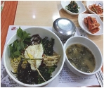 음식점2의 주력 메뉴는 새싹인삼 삼채비빔밥이었고, 삼채뿌리 초무침, 삼채장아찌 지역 특산식품인 삼채의 활용도가 높았으나 식재료의 다양성이 보이지 않았다. 비빔밥에 다양한 종류의 반찬들을 푸짐하게 제공되고 있었다(Table 2). 메뉴 진단평가결과 감칠맛과 손맛이 느껴지는 시골밥상 느낌이 강하였다. 비빔밥의 나물류는 길이가 길어 먹기 불편하다는 평이 있어 나물 길이는 5 cm 내외로 줄여 주는 것이 좋을 것으로 생각된다. 삼채 장아찌는 삼채 특유의 향이 나지 않고 식감도 좋았지만 삼채뿌리 초무침과 메뉴의 중복성이 있었다(Table 3). 우수한 맛과 식재료의 장점을 살리기 위해서 위생적이고 정갈한 느낌을 주는 상차림 개발이 필요할 것으로 사료된다(Table 3). 제공되는 메뉴 중 숙채류는 44.45%(Table 4)를 차지하고 있다. 삼채 비빔밥에 나물류가 제공되고 있는 점 까지 감안 한다면 숙채류를 과다 사용하고 있어 숙채류는 수를 줄여 주는 것이 좋을 것으로 생각되며 다양한 일품메뉴 개발이 필요하였다.