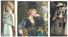 Fig. 14의 셰리 결혼식 후 샬롯 집 모임에서, 레아는 어두운 청록(deep blue green) 색 드레스 위에 검은 청록(blue green) 색 벨벳 재킷과 동양적인 모티브의 화려한 꽃문양 벨트와 터번을 액세서리로 착용하여 이국적인 취향을 나타내었다. Fig. 15는 레아가 셰리와 헤어진 후, 같이 생활하던 노르망디(Normandie)에서 벗어나 비아리츠의 그랑 팔레 호텔 숙소에 머물 때 착용한 V넥의 하늘(sky blue) 색 드레스로 동양에서 권위의 상징으로 여겼던 술 장식을 허리 부분에 내려뜨려 장식함으로써 이국적인 취향을 나타내었다. Fig. 16은 샬롯이 비아리츠에서 노르망디로 돌아온 레아의 집을 방문하는 장면이다. 샬롯의 드레스는 볼륨 있는 소매에 목선은 깊이 파이고, 보석 장식의 세로선으로 구성되어 화려한 장식이 유행하던 빅토리아 시대 복식 특징을 나타내고 있다. 의상과 함께 큰 모자, 레이스, 파우치 백과 시스루 핑거리스 토시(fingerless tosh)를 착용하였다.