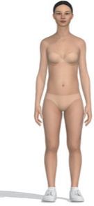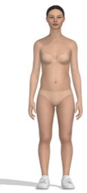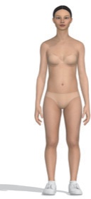 본 연구에서는 디지털 인체를 체형별로 제작하기 위하여 사이즈코리아(Size Korea)에서 제공하는 한국인의 체형 분류 데이터를 활용하였다. 사이즈코리아의 성별 및 연령별 체형 데이터 중 20대 여성의 인체치수 데이터를 사용하였고, 체형은 작은 역삼각체형, 역삼각체형, 큰 삼각체형, 사각체형의 네 가지로 구분된 분류 체계를 적용하였으며, 표준체형 데이터도 함께 참조하였다(Size Korea, n.d.). 이를 기반으로 클로버추얼패션사의 CLO 3D의 아바타 편집툴(Avatar editor)에 각 데이터를 입력하여 가상착의에 필요한 다섯 가지 디지털 인체를 구성하였다.