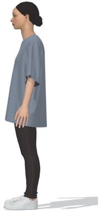 또한 체형의 다양함은 대부분 키와 둘레로 결정되며 티셔츠, 탑 등과 같은 상의류 착용 시 맞음새만족도는 다양한 조건으로 달라질 수 있다. 티셔츠 연구의 경우, 밀착형, 원형, 맞음새 비교 및 패턴 개발이 주로 이루어졌으며(Park & Park 2011; Chang et al. 2014; Kim & Kwon 2016; Kim et al. 2017; Kang 2021), 몸판에 관한 연구는 길 원형(Yun & Park 2011; Hong 2015), 토르소 원형(Yoon 2013)을 주제로 진행되었다. 이와 같이 여성 상의류에 관한 기존 연구는 주로 밀착형이나 원형을 중심으로 전개되어 왔지만, 한 개의 치수(free size)를 적용하여 제작되는 오버사이즈 상의류의 맞음새 효과에 대한 연구는 전무하다. 이에 본 연구는 상대적으로 연구가 부족한 오버사이즈 티셔츠를 연구 대상으로 선정하고, 20대 여성의 체형별 가상착의에 대한 맞음새 효과를 비교 분석하고자 한다. 특히 20대 여성은 트렌드에 민감하고 이를 빠르게 수용하는 소비 집단으로(Meilkyungjie 2019; Gu 2022), 캐주얼 의류 중에서도 티셔츠 소비 비중이 높다는 점에서(Fashionnet 2024) 연구 대상으로서의 필요성을 가진다.