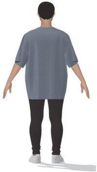 베이직 티셔츠 원형(Fig. 1)을 기반으로 오버사이즈 티셔츠 원형은 상의길이, 어깨너비, 가슴너비, 소매길이에 여유분(각 14.6 cm, 15.3 cm, 11.6 cm, 3.6 cm)을 추가한 오버사이즈 티셔츠의 데이터(상의길이 73.6 cm, 어깨너비 55.2 cm, 가슴너비 58.4 cm, 소매길이 23.2 cm)를 대입하여 수정 제도하였다. 해당 패턴의 디지털 제도는 YUKA CAD 프로그램을 사용하였으며, 제도한 2차원(2D) 이미지를 3차원(3D) 이미지로 전환하기 위해 DXF 파일 형식으로 변환하였다. 이후 CLO 3D 프로그램에 DXF 파일을 불러와, CLO의 재봉 기능을 이용해 가상의 오버사이즈 티셔츠 원형을 완성하였다. 제작된 가상 티셔츠는 먼저 CLO 3D의 아바타 편집 툴을 이용해 설정한 표준체형 아바타에 착의하였으며, 이후 동일한 방법으로 20대 여성의 네 가지 체형 아바타에도 입혀 총 5개의 아바타에 가상착의를 진행하고 착의 효과를 비교하였다.
