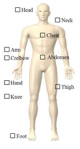 소 사육 작업 시에 외부 이물질 및 장애물 등에 의한 접촉 부위 조사결과는 관상면(인체를 앞과 뒤로 나누는 면)으로 나누어 제시하였고, 신체부위에 따른 결과는 Table 4와 같다. 주로 접촉하는 앞면 신체부위는 무릎이 21.8%, 손이 19.1%, 팔 안쪽 부위가 13.6%, 가슴이 6.2%, 목 부위가 5.1% 등의 순위를 보였고, 뒷면에 주로 접촉되는 부위는 엉덩이 부위가 39.3%, 팔꿈치가 21.4%, 허리가 20.7%, 발목 11.0% 순으로 나타났다. 그리고 소와의 접촉사고 경험에 대한 조사결과, 소의 뒷발에 차이는 사고가 36.1%로 가장 높게 나타났고, 뿔에 받히는 경우가 28.2%, 발에 밟히는 사고가 20%, 소에 의해 끼이는 사고 12.6%, 그리고 소에 깔리는 경우가 3.53%로 나타났다. 이와 같은 이물질 접촉 및 신체 상해 부위를 고려할 때 무릎 및 발, 손 보호구, 팔의 내측 및 복부 부위 등에 대한 신체 보호구 개선 및 개발에 대한 노력이 필요할 것으로 보인다. 또한 소와의 접촉사고는 중대 사고로 이어질 가능성이 높으므로 이에 대한 보호 장구 개발 등의 다방면의 노력이 필요할 것으로 판단된다.