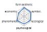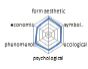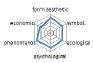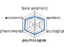 농촌경관 변화요인들의 외적, 내적 속성에 대한 경관분석을 위하여 ① 경관의 외형적 인자를 판단하는 형식미학적 측면, ② 경관의 상징적 의미에 대한 상징미학적 측면, ③ 토지이용, 생태적인자, 인간의 활용에 대한 생태학적 측면, ④ 인지도, 선호도에 대한 심리학적 측면, ⑤ 인과관계에 의한 관계를 살피기 위한 현상학적 접근, ⑥ 금전적 가치에 대한 경제학적 측면 등 6가지 기준을 토대로 평가가 이루어졌다. 이들 요인 항목들은 설문조사에 일반적으로 사용되는 5점 리커트 척도(전혀 그렇지 않다: 1, 매우 그렇다: 5)를 사용하여 측정하였다(Table 5).